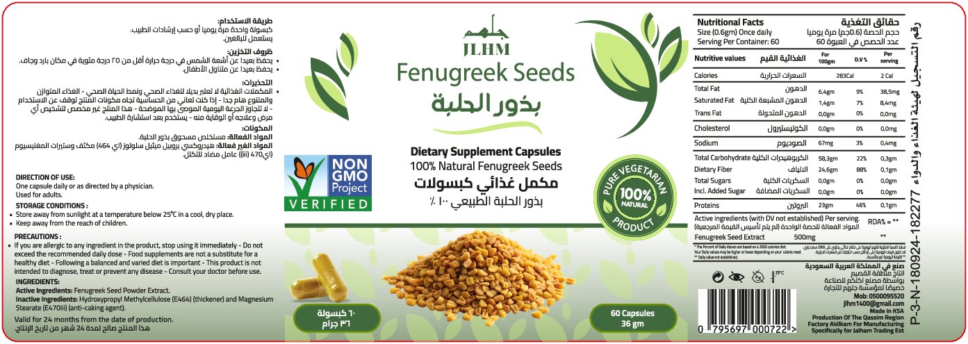 تم إنتاج هذه الكبسولات من بذور الحلبة المزروعة في القصيم، وهي معروفة بنقائها وجودتها العالية، بدون أي مواد كيميائية أو إضافات صناعية.